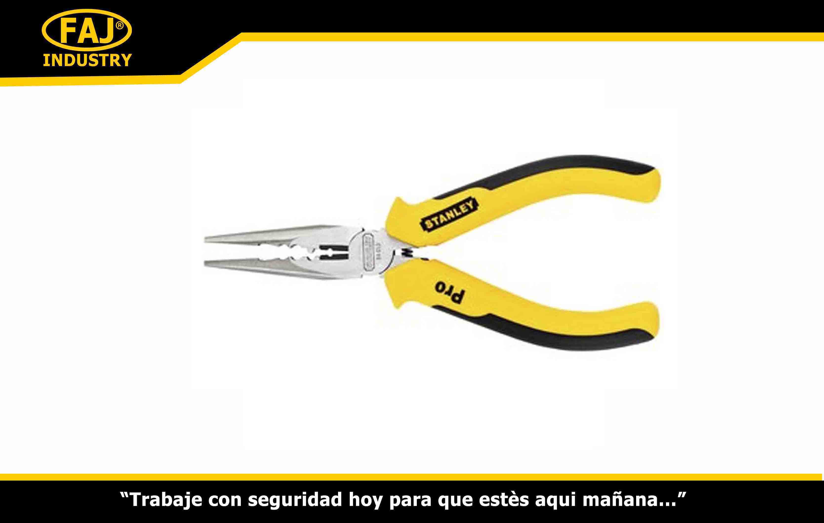 Alicate Stanley 6" con mango bi-material anti-deslizante.