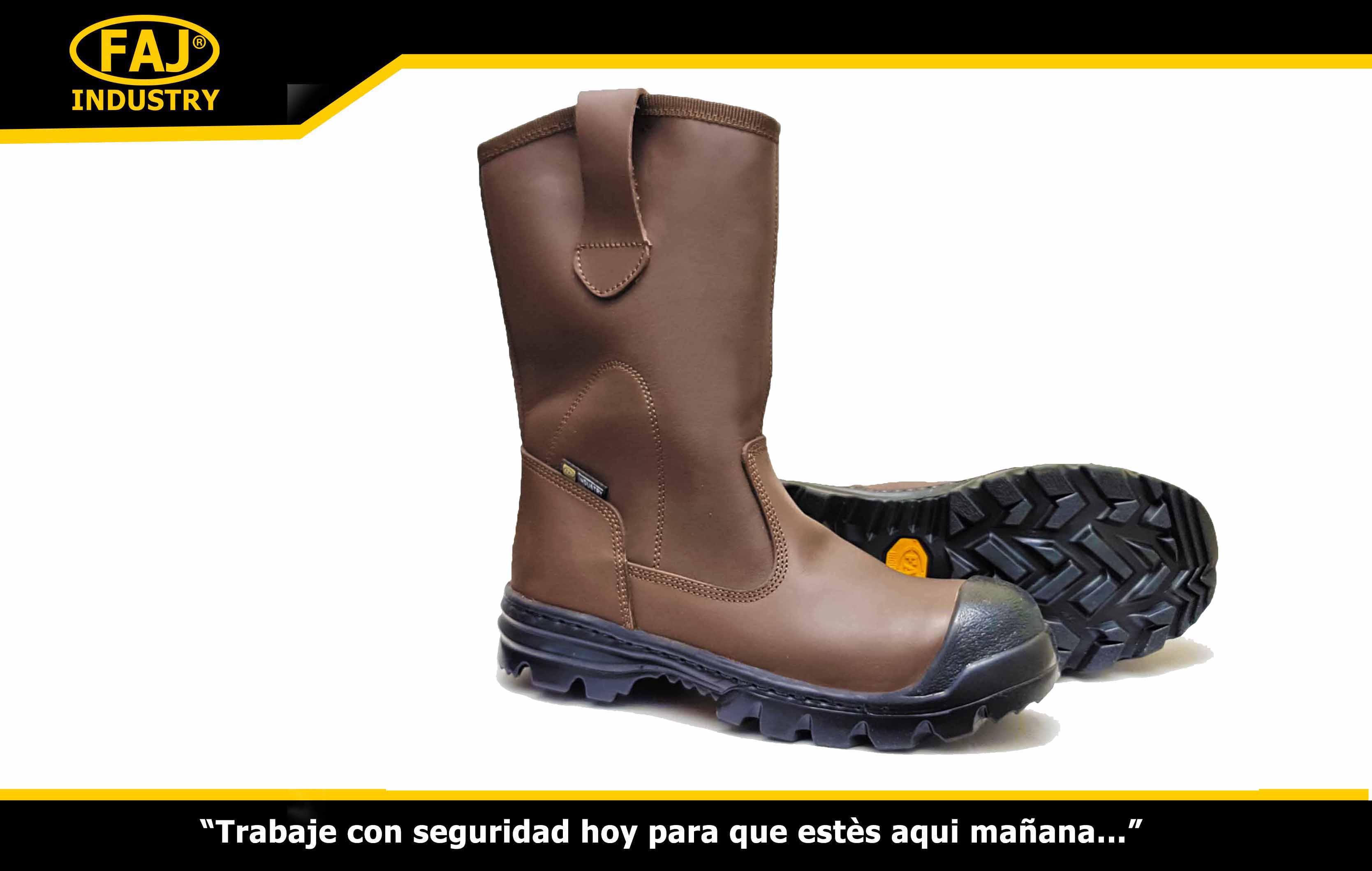 Las Botas campera de FAJ INDUSTRY son fabricados de cuero liso nacional lustrable con punta de acero con punta recubierta de caucho para mayor protección y Seguridad Fabricadas En Cuero Box 2.00mm. Fabricado por sistema vulcanizado. Suela Caucho , Nitrilo ,antideslizante y resistente a hidrocarburos. Mas resistente Y Durable. Mas Cómodas Y Seguras. Campera con Punta de Acero. Fabricación Nacional.
