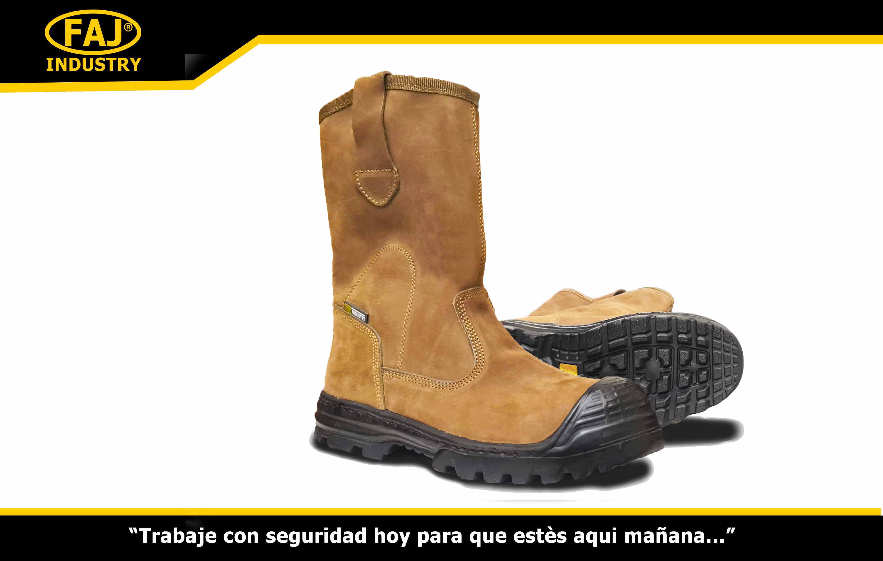 Las Botas campera de FAJ INDUSTRY son fabricados de cuero liso nacional con punta de acero con punta recubierta de caucho para mayor protección y Seguridad Fabricadas En Cuero Nobuck 2.00mm. Fabricado por sistema vulcanizado. Suela Caucho , Nitrilo ,antideslizante y resistente a hidrocarburos. Mas resistente Y Durable. Mas Cómodas Y Seguras. Campera con Punta de Acero. Fabricación Nacional.