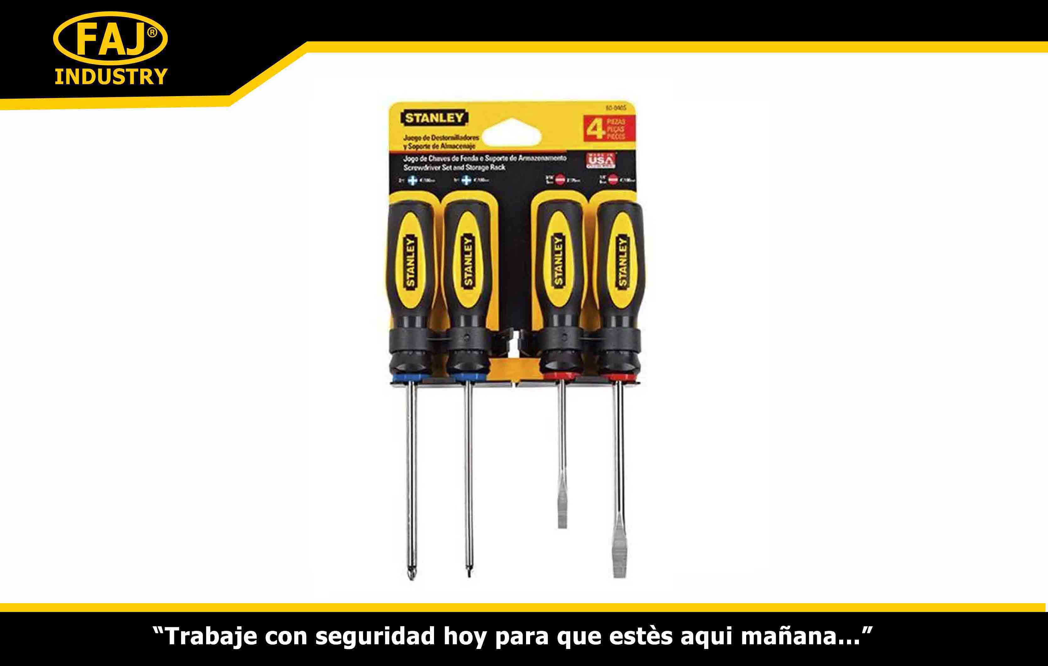 Set de 4 piezas de destornilladores Stanley. Mangos con 4 lóbulos diseñados ergonómicamente para mayor torque y comodidad.
