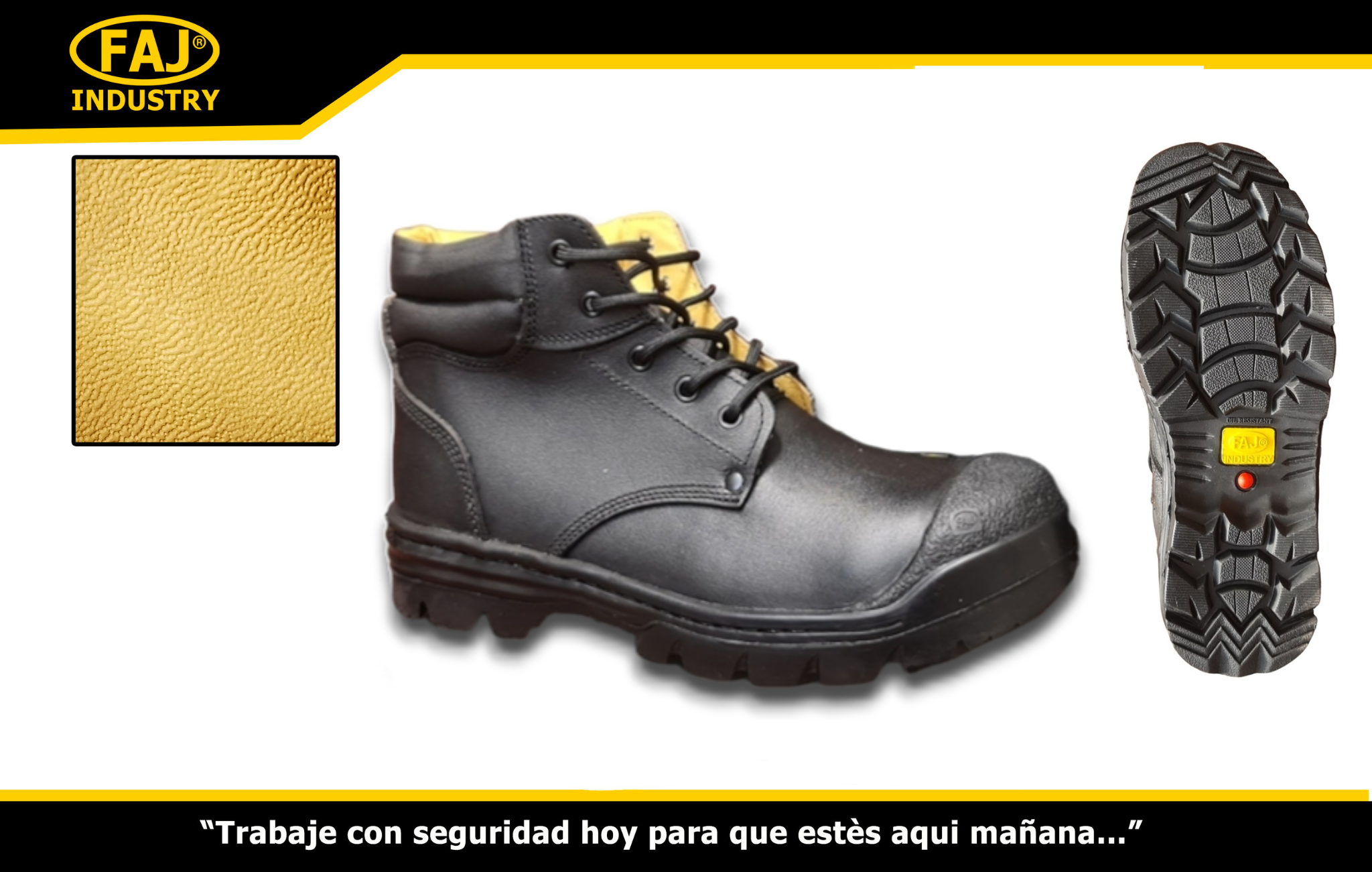 El calzado de la marca FAJ INDUSTRY, es calzado industrial, también conocida como botin de seguridad, es un tipo de calzado que pretende proteger al trabajador de los peligros de su oficio. ... El propósito del botin industrial es proteger a los obreros de peligros como: Accidentes mecánicos: caída de objetos, golpes sobre el pie, objetos punzocortantes